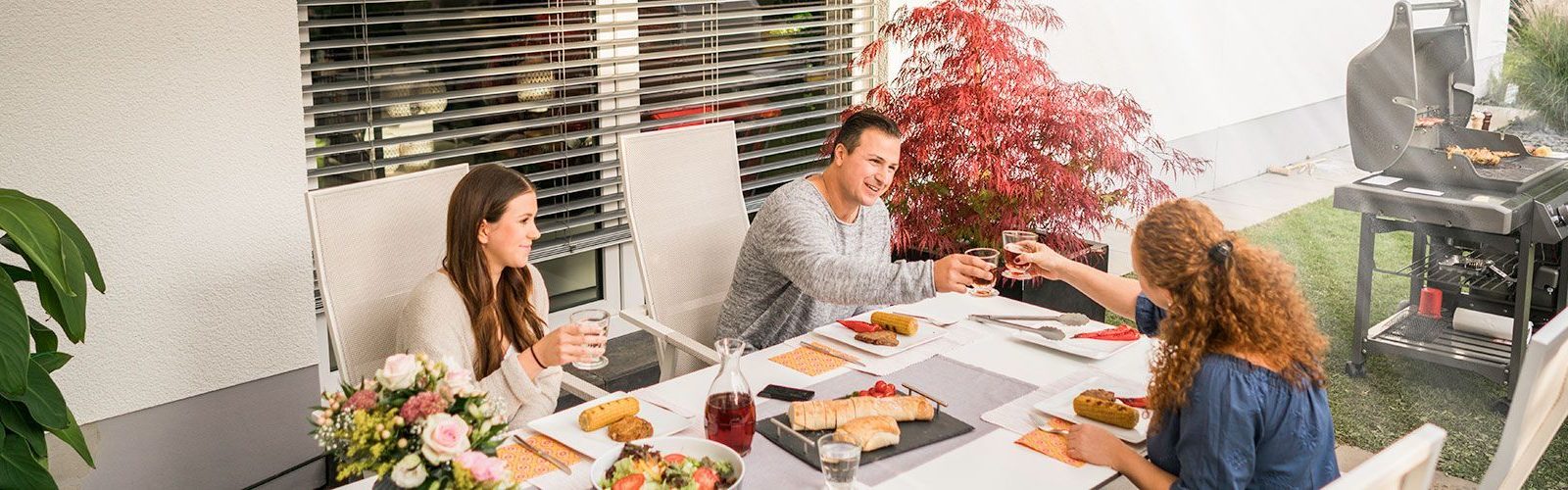 Sie möchten mehr Zeit im Freien genießen und dabei auf perfekten Sonnenschutz nicht verzichten? Mit unseren innovativen Outdoor-Living Produkten schaffen Sie auf Terrasse, Balkon oder in Ihrem Garten einen völlig neuen Lebensraum: Ein einzigartiges WohnfühlZimmer zum Arbeiten, Relaxen oder Spielen für die ganze Familie. In unserem Programm finden Sie hochwertige Produkte für jede Einbausituation und jeden Geschmack. Attraktive Dessins und Farben sichern Ihnen maximale Gestaltungsfreiheit. Und durchdachtes Zubehör garantiert jederzeit optimalen Bedienkomfort und ein echtes Plus an Lebensqualität.